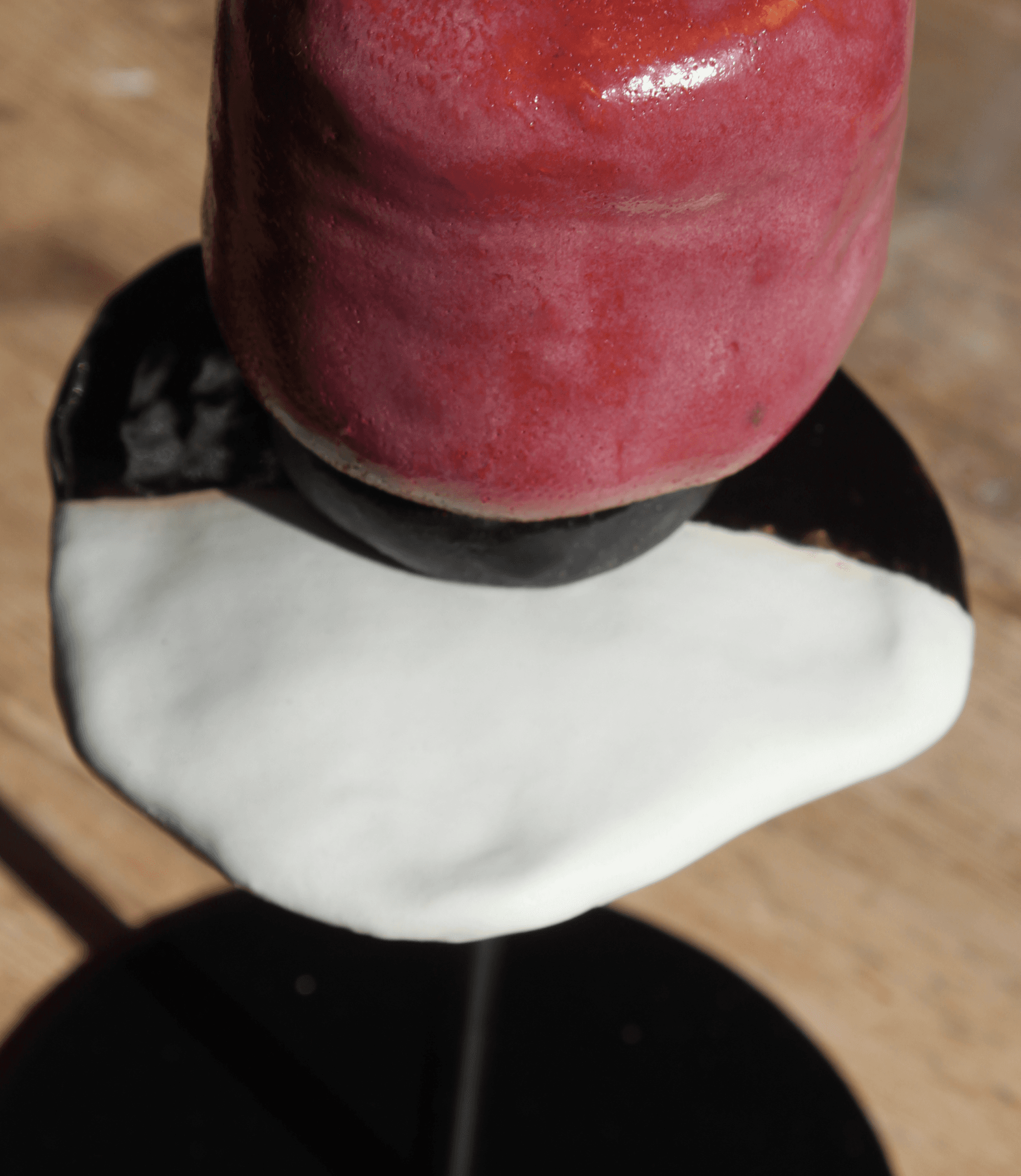 Lo divertido de esta pieza es que aunque el rosa siempre resalta, según la luz el tono cambia. Siempre se ve rosa pero la luz puede generar reflejos lilas o rojos.